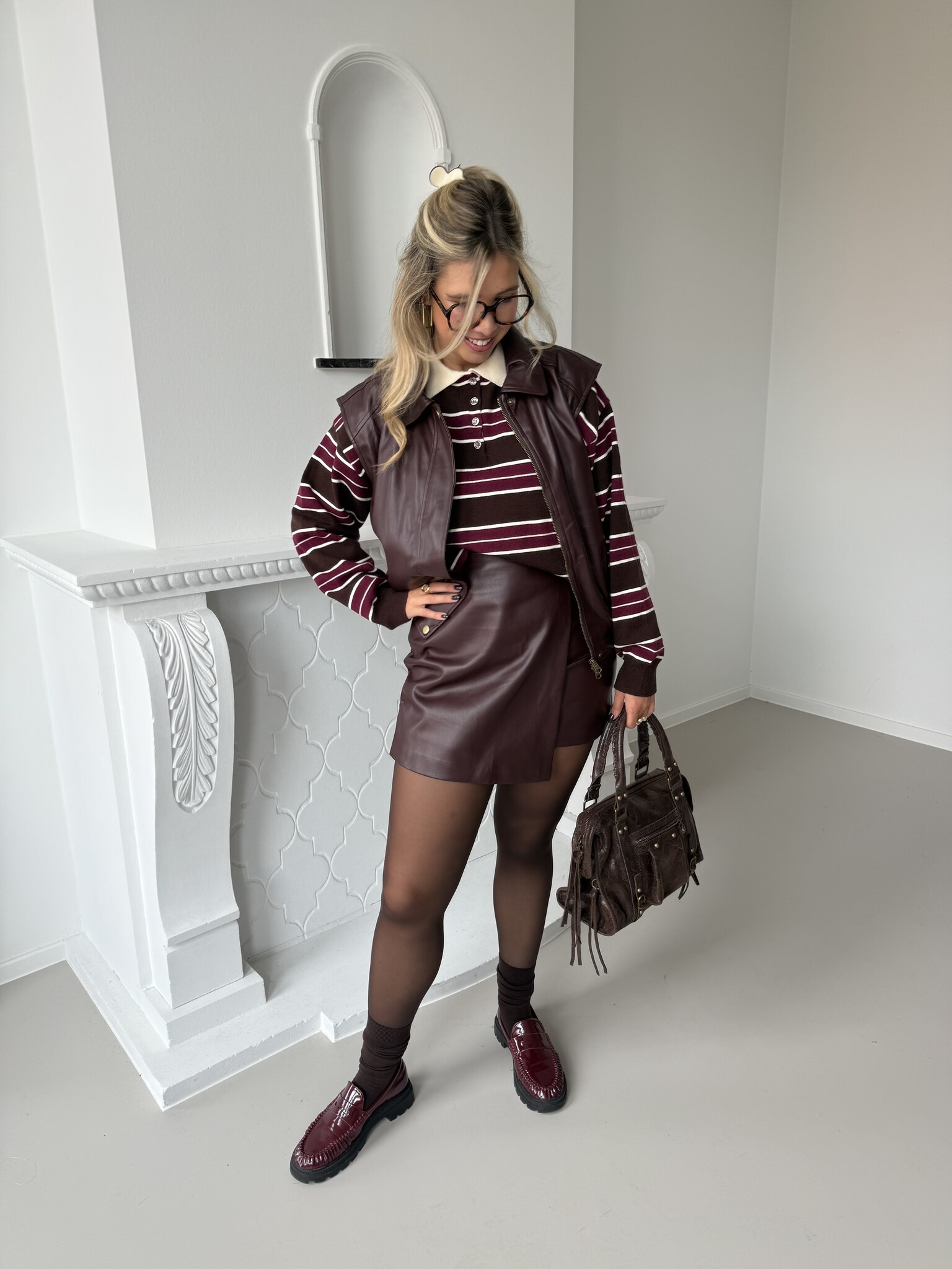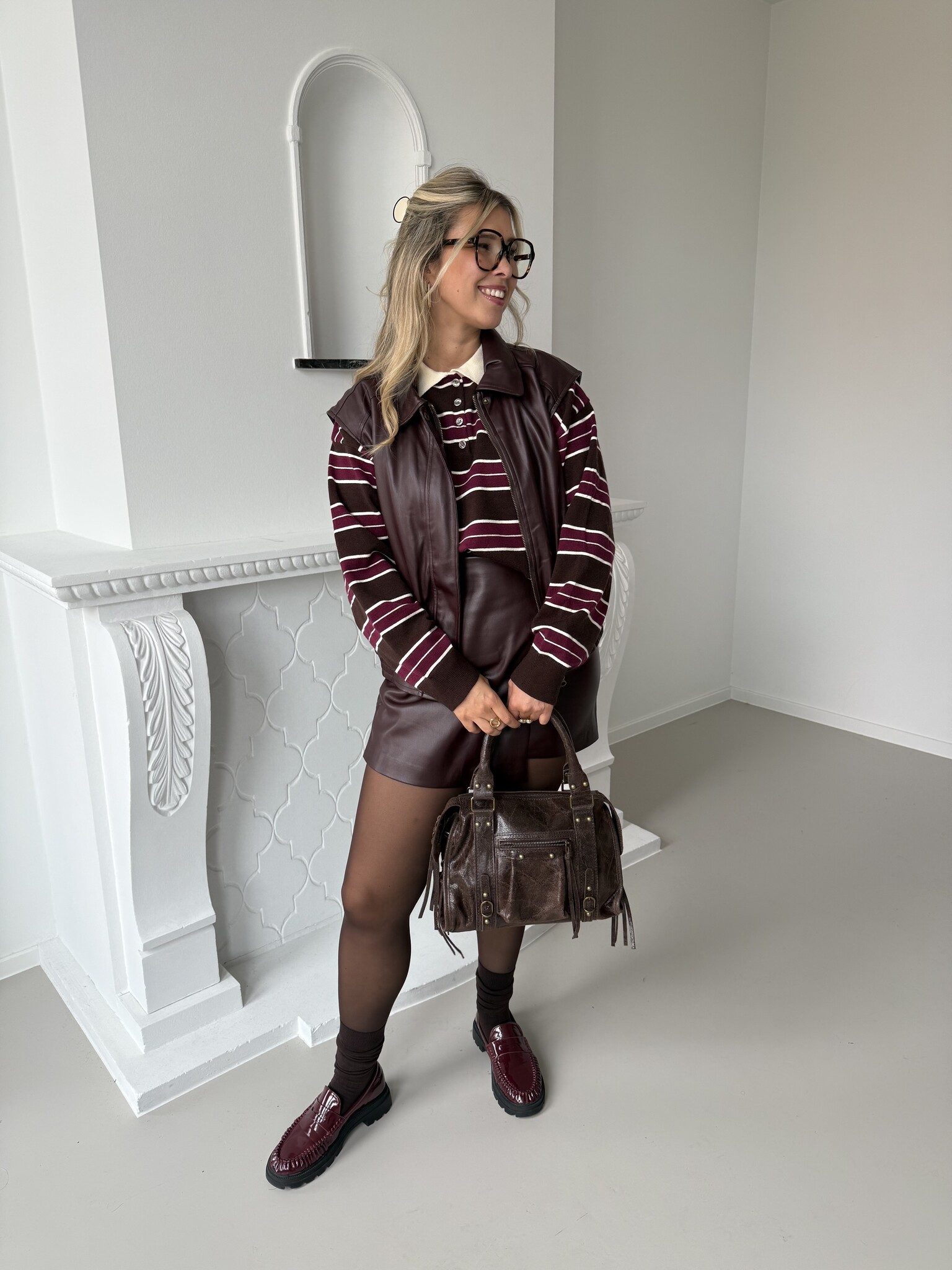 Fitting: De waistcoat draagt Axelle in haar normale maat, valt ook iets meer oversized dus kan je deze gewoon in je eigen maat nemen. Je kunt hieronder ook een dikkere trui dragen.